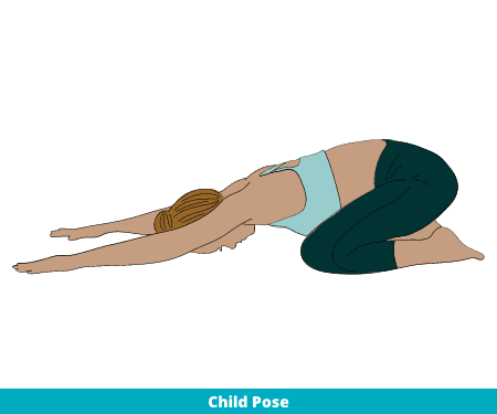 En commençant par la position à quatre pattes, gardez vos épaules alignées avec votre main et vos hanches au-dessus des genoux. Essayez de toucher vos fesses à vos talons ou asseyez-vous sur vos talons aussi loin que vous le pouvez, sans bouger vos bras et vos mains de leur position. Rentrez votre tête entre vos genoux et maintenez la position pendant trois à quatre secondes.